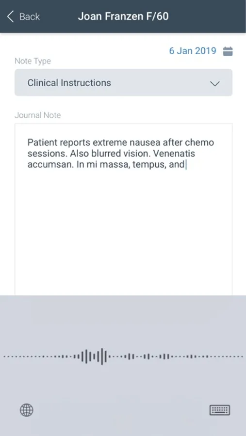 • Dictate patient chart notes using the mobile device voice dictation features