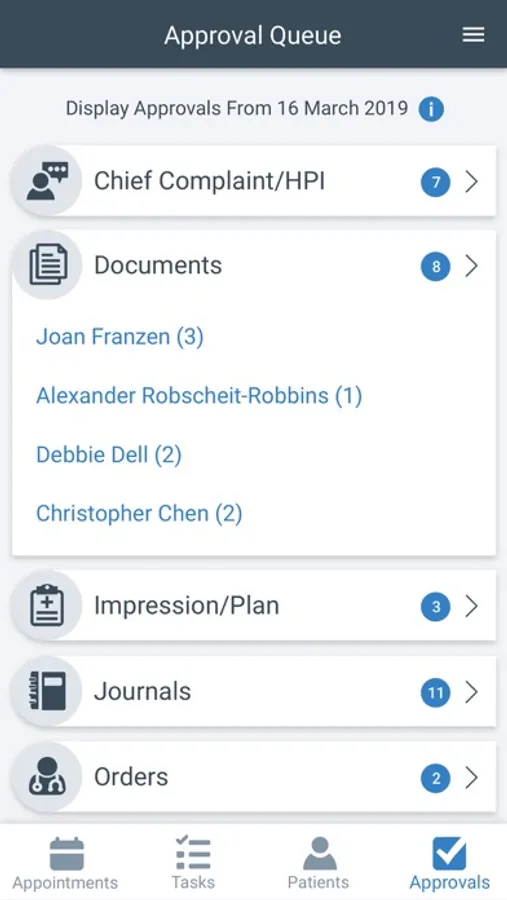 • View patient chart summary including the ability to modify and create journal notes, chief complaint, history of present illness, impression and plan information