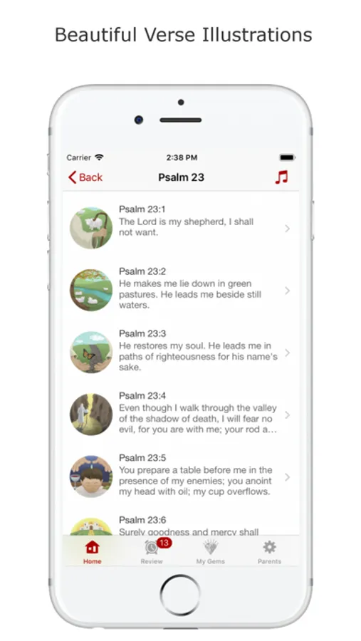 After memorizing a verse, you’ll be reminded to review it in the future, as needed. A smart review cycle helps focus on verses that need review most, while using a less frequent schedule for verses your child knows well.