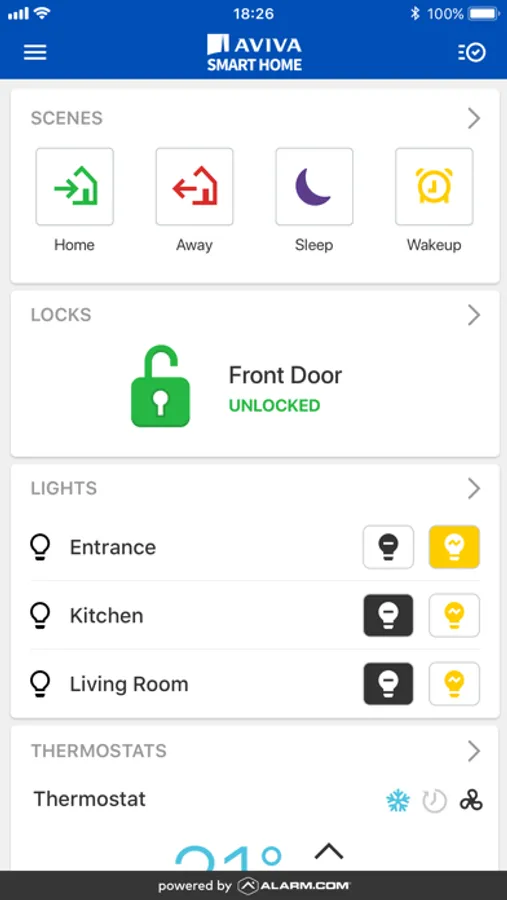 With Aviva Smart Home you can monitor and control your home in real-time and from anywhere. Interactive security, energy management, and home automation solutions give you instant awareness and remote control for the place you care about most. Features: