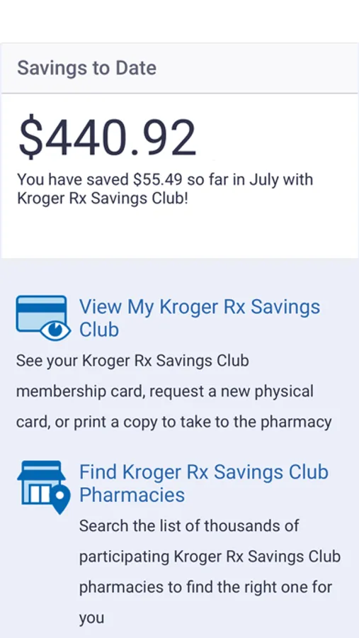 Kroger RxSavings Club is a paid membership program. Your membership card is built right into the app - just show your pharmacist to save. Use the app to sign up, see past purchases, look up current prices and drug information and more. You can use your membership card to save at any of Kroger's family of stores across America.