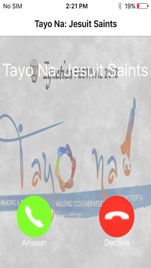 "Tayo Na: Jesuit Saints" is an app that makes use of QR codes in order to tell the stories of different Jesuit saints who lived out making a stand, going forth and valuing togetherness - the three meanings of the phrase "Tayo na" - in an Ignatian way. The QR codes may be found with each of the saint's image when they are exhibited in the different Ateneo units during Ignatian Festival month. Use the app to scan the QR codes, and upon scanning the QR code, you will receive a "call". Answer the call in order to find out the inspiring narratives of the Jesuit saints who set an example for us.
