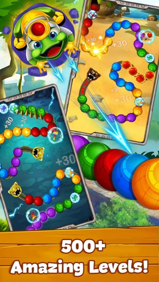 - Control Frog shooting to match three or more marble colored balls - as much as possible.