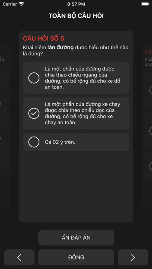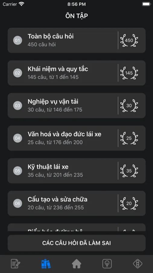 Ứng dụng hỗ trợ ôn thi và làm bài thi sát hạch lái xe ô tô hạng B2, B1, C, D, E, F.