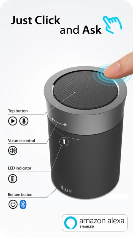 Easy-to-use Aud Click 2 app guides you to set up iLuv Aud Click 2, a Portable Bluetooth Speaker with Amazon Alexa.