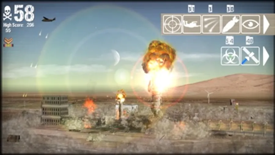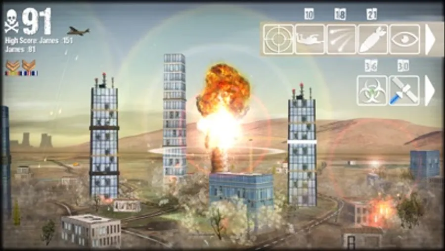 A range of powerful weapons to destroy your enemies and wipe out city blocks, use nuclear bombs to wipe out large city sections, Mother of All bombs can turn a city block into ash, Drop as many TNT bombs as you want plus use your 50 caliber Guns to destroy ground and flying targets. MELT enemies with chemical weapons! Annihilate city CBD's for maximum effect!