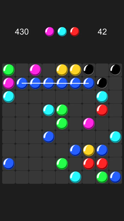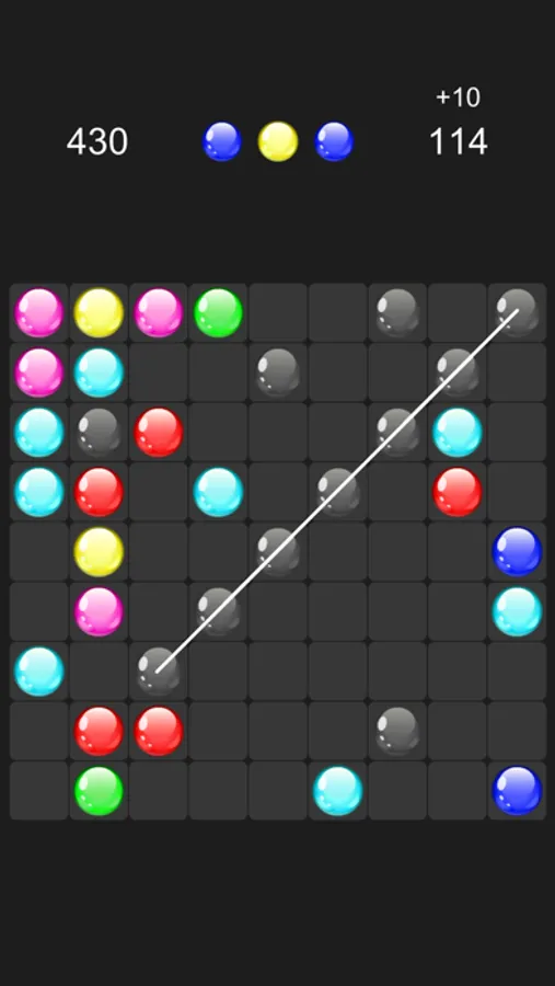Color Lines gameplay is simple , you have to arrange 5 (or more) balls of the same color in a straight line or horizontally or diagonally to eliminate him.