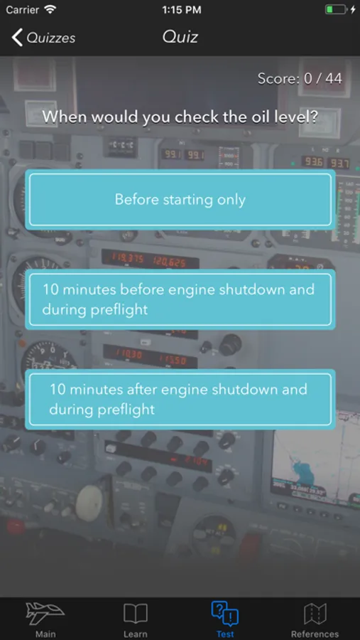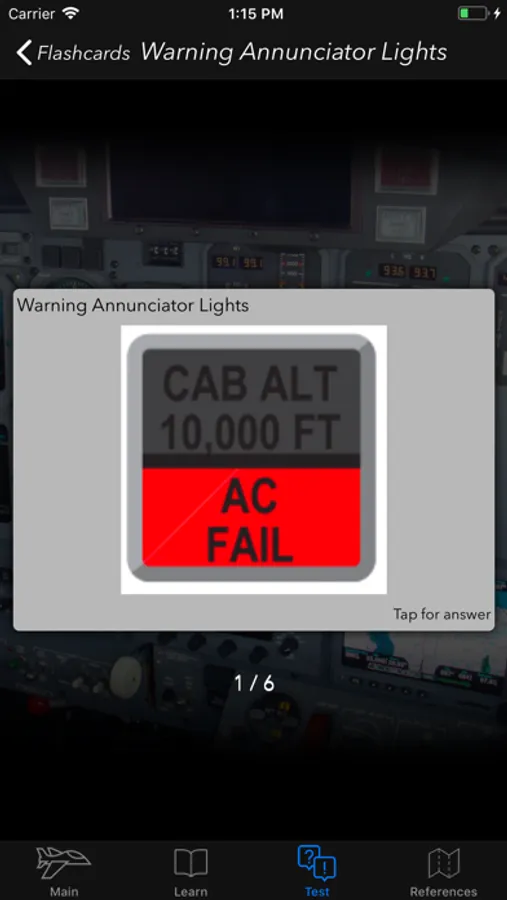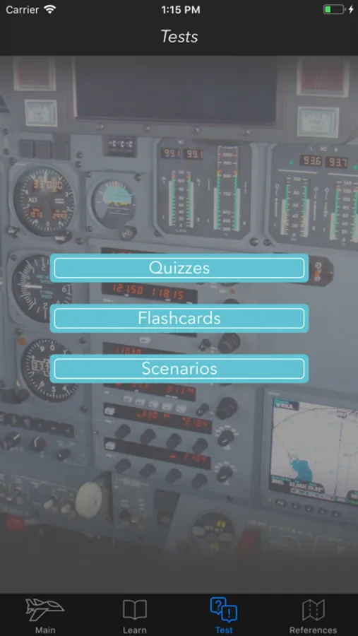 The test tab includes quizzes, flashcards and scenarios that cover all of the systems, memory items, CAS messages and performance and limitations. Quizzes keep track of your score and when you last took the quiz. There are almost 300 quiz questions organized by systems to help you prepare for your checkride oral exam. Flashcards cover memory items and limitations, CAS messages, systems and more. Flashcards can be done by system or randomized. Scenarios challenge you to put all your knowledge together and use it to figure out how to make flights under varying conditions along with all your performance data.
