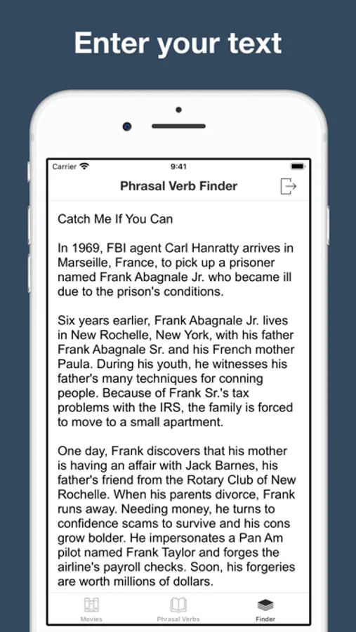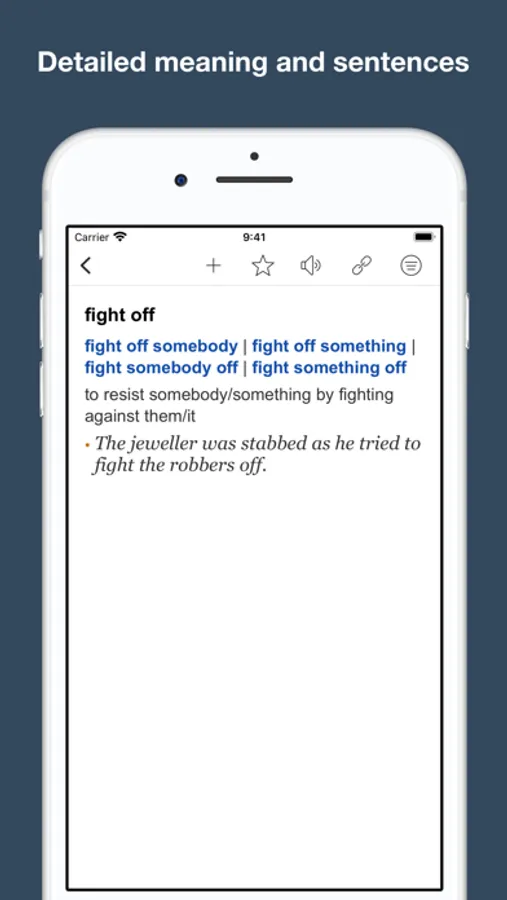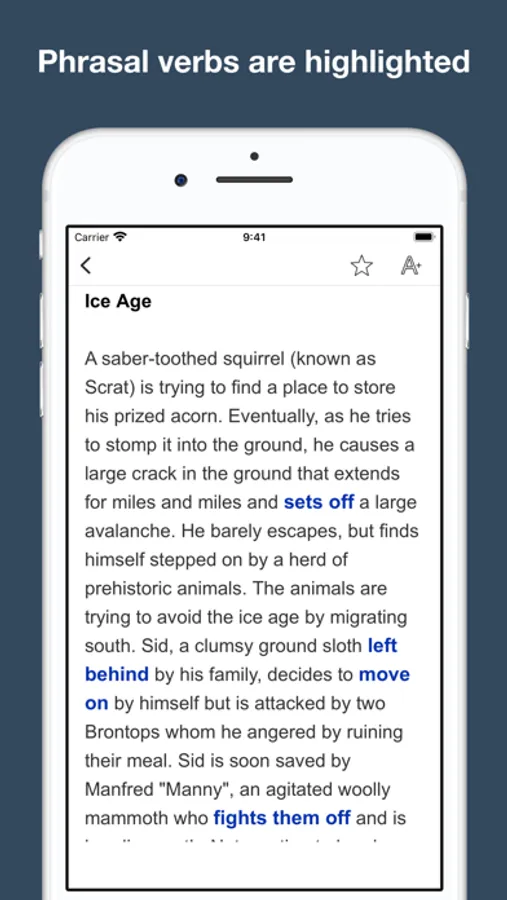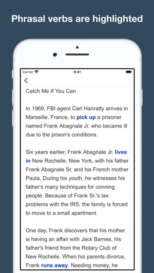 • tap highlighted phrasal verbs to see detailed meaning and sample sentences
