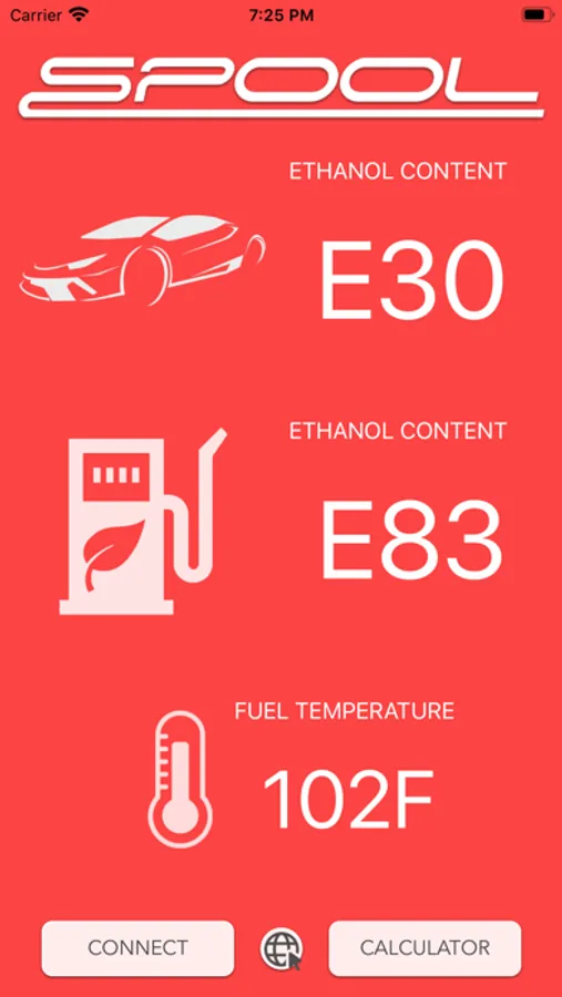 The App also includes a mixing ratio calculator and it can be used even if you don't have access to the Spool Wireless Ethanol Sensor Kit.