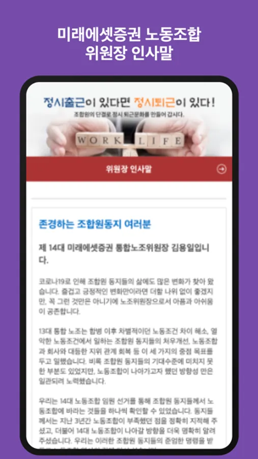 조합원과의 소통을 위해 어플리케이션을 출시하였습니다.