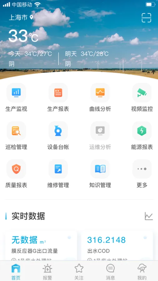 工业企业生产运行数据展示、报警管理、设备物联网管理等移动化支持终端,配合电脑端的后台管理,对生产运营以及设备监管进行实时监管。