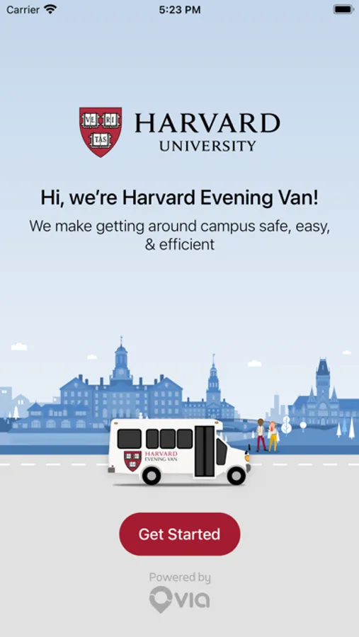 The Harvard Evening Van app enables you to book a van to and from anywhere within the campus service area. Harvard Evening Van provides you a safe, convenient travel experience in and around the Harvard University campus. With the app you will be able to select your pick up location, tell us where you want to go, and track your van so you know when to head to the pick up location. The Harvard Evening Van is proudly operated by Harvard Transportation and powered by Via.