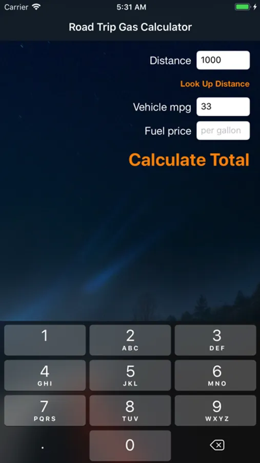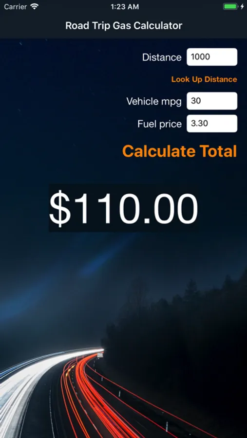 Road Trip Gas Money Calculator let's you calculate the fuel cost for your next road trip. Maps are included so you can look up destination distance from within the app.