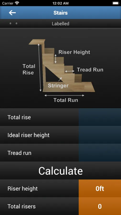 Inputs: Rise, Run, Angle (Enter rise and either run or angle)