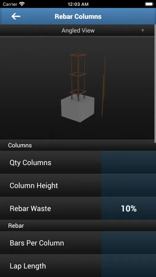 Inputs: Width, Length, Thickness, Use rebar option, Rebar spacing along width, Rebar spacing along length