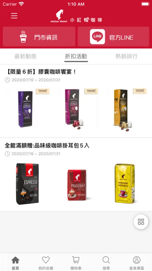 2.不定時小紅帽咖啡實體店面優惠通知!最好康