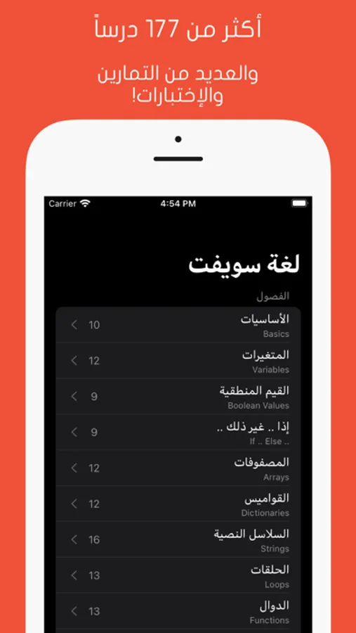 - يدعم آخر إصدار رسمي من لغة سويفت.