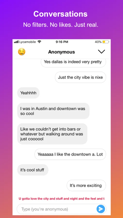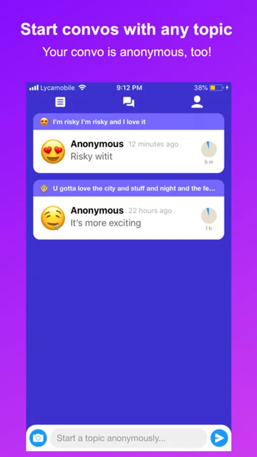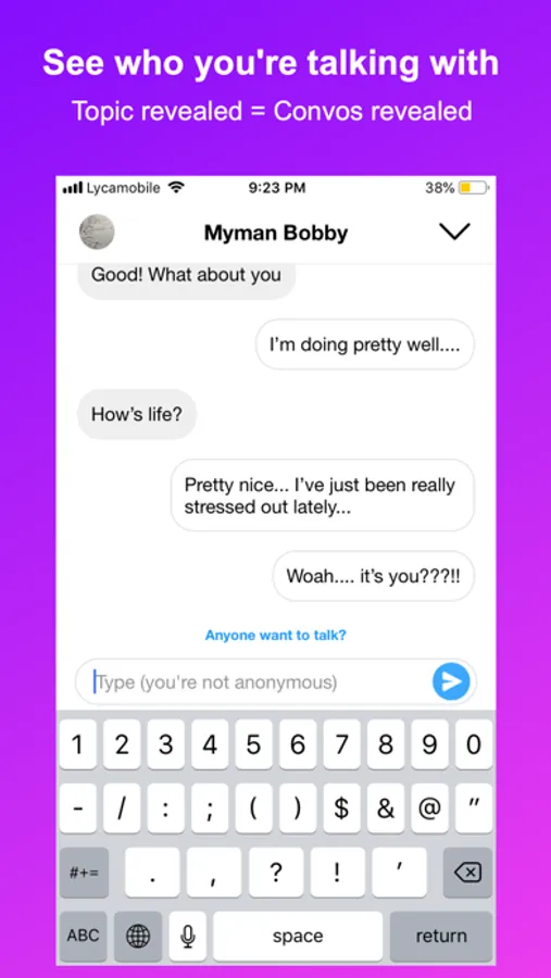 Any of your friends can start a conversation with you about your topic. Neither you nor your friend will know who you're talking with unless your topic gets revealed!