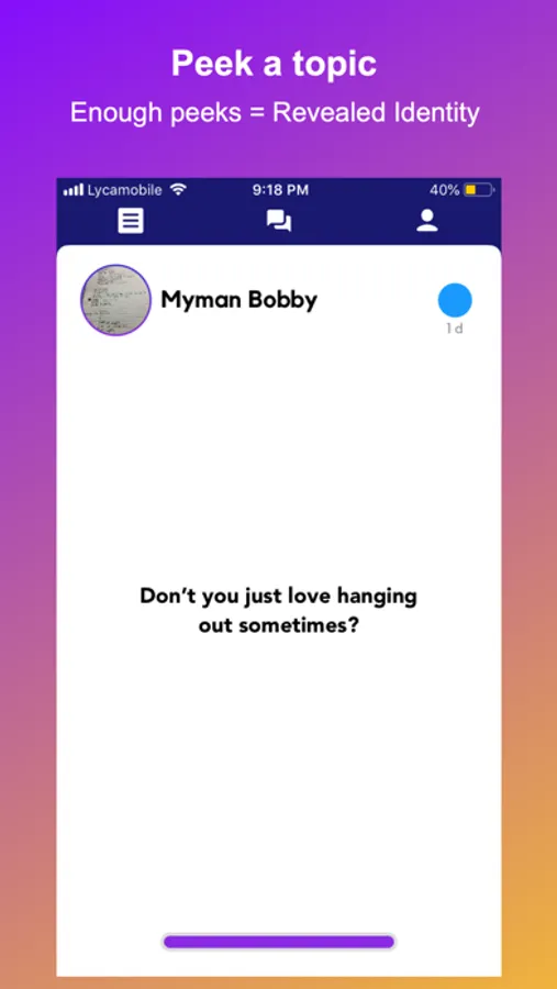 Peeko is the best way to share among your friends what's really on your mind without judgement, bias, filters, or likes! Start a topic (you're anonymous!), have anonymous conversations about your topic with friends, and maybe, if your topic is interesting enough, see who you're talking with!