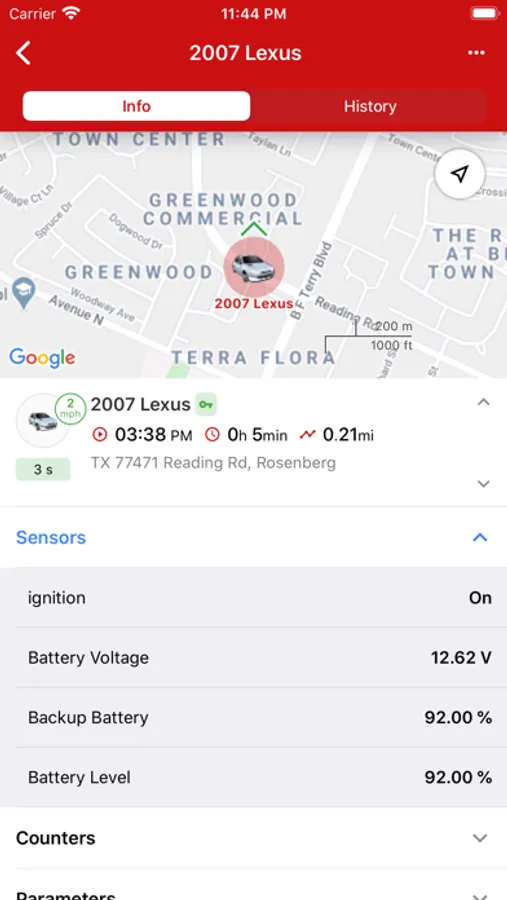 Tracking mode. Monitor precise location and parameters received from a particular unit.