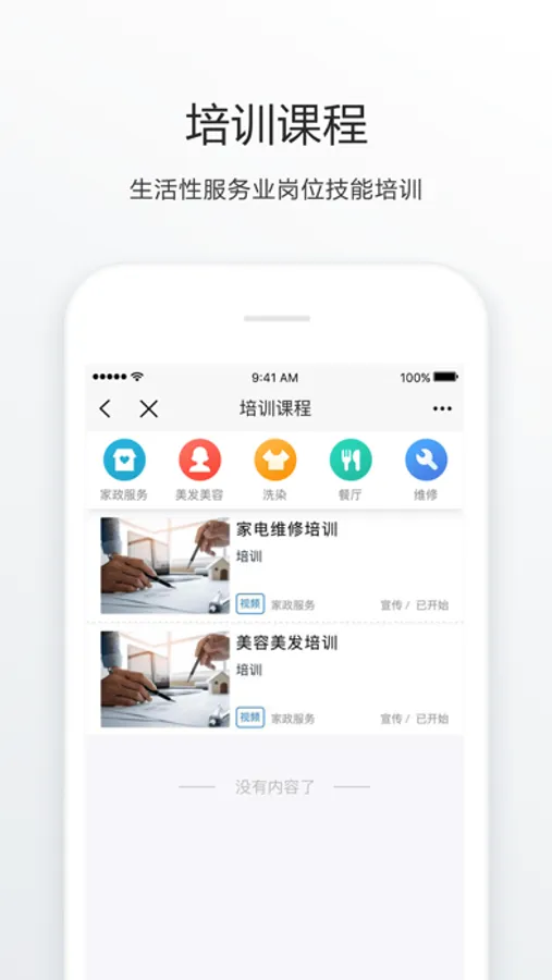 【培训课程】:家政服务、美发美容、洗染等行业培训课程