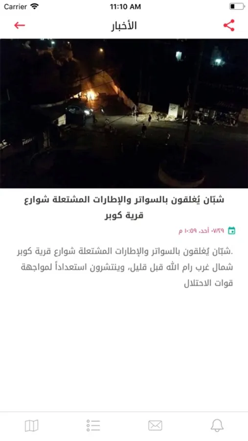 ·ارسال اشعارات عن ورود اخبار عن الحواجز