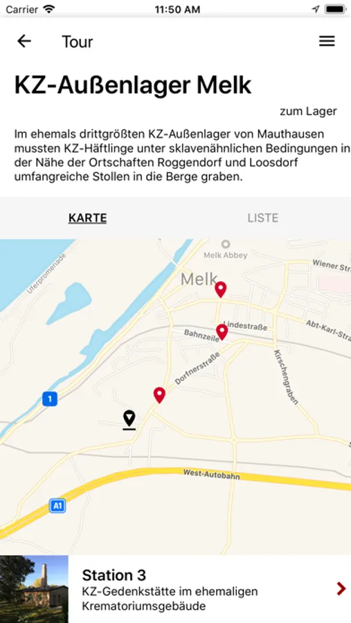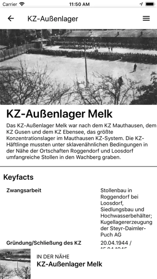 Die „Mauthausen-Außenlager-App“ bietet Informationen zu allen Orten ehemaliger Außenlager des KZ Mauthausen.