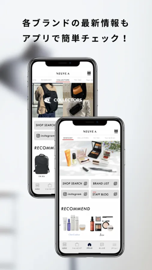 ヌーヴ・エイの運営する5つの代表ショップブランド、腕時計の「TiCTAC(チックタック)」、コスメの「ROSEMARY(ローズマリー)」、メンズ雑貨の「COLLECTORS(コレクターズ)」、ステーショナリー雑貨の「Tour de Brain(ツール・ド・ブレイン)」などのショップ及びオンラインストア共通の会員証としてご利用頂けます。
