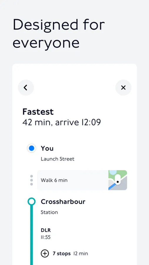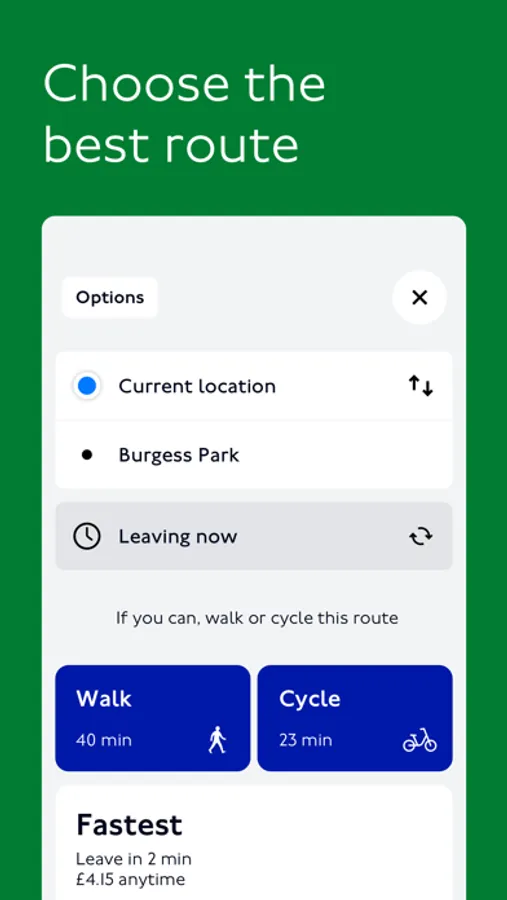 Planning your journey: We’ll suggest multiple ways to get to your destination – you pick the one that suits you best. Choose the quickest journey, bus-only or one that’s step-free.