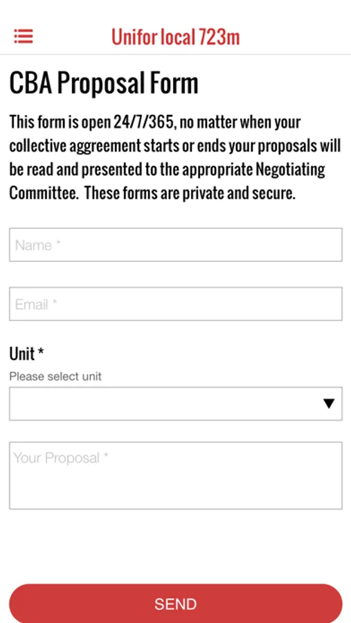 Unifor Local 723m member information and news. The app includes the local units CBA's and a calendar of events. Push notifications will be sent out to inform members of upcoming meetings and events. A CBA proposal form is available 24/7/365 for members to submit proposals for their collective agreements.