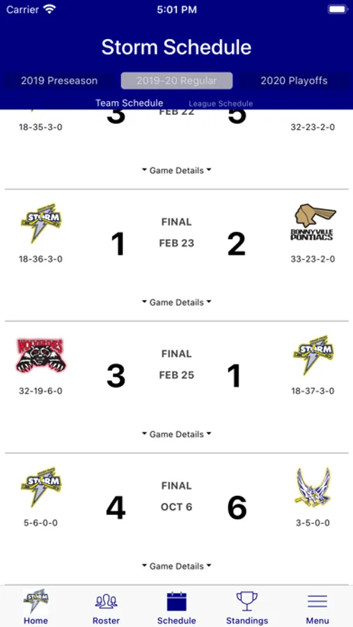 • Access to Preseason, Regular Season and Playoff Season Details