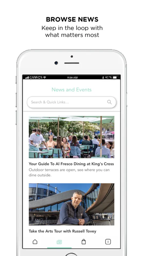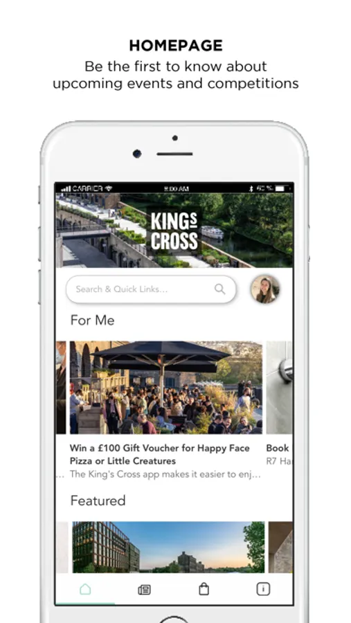 Introducing the NEW King's Cross app. With this latest update we've completely overhauled our app, making sure that you always have access to the latest events, news and offers to be found in our neighbourhood. You'll be the first to know about what's coming up at King's Cross, with priority event tickets and exclusive access to competitions. Plus, find out more about our shops, bars and restaurants, including exclusive offers for you to enjoy.