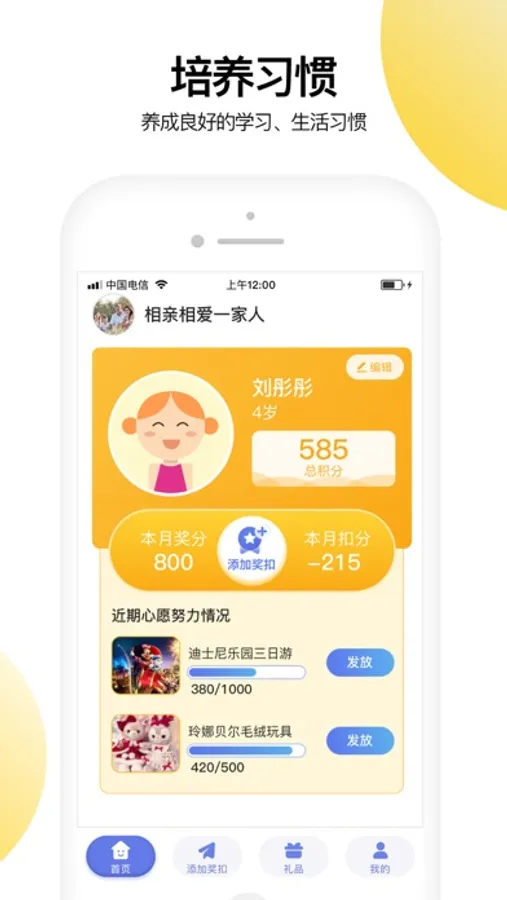 群艺家庭积分制是一款家长使用,用于记录孩子日常行为,培养好习惯的教育管理软件,通过积分认可孩子的优良行为。家长准备好的礼物,通过积分给孩子提前规划目标,以此激励孩子挣积分,让孩子成为身心健康、综合素质强的小朋友。