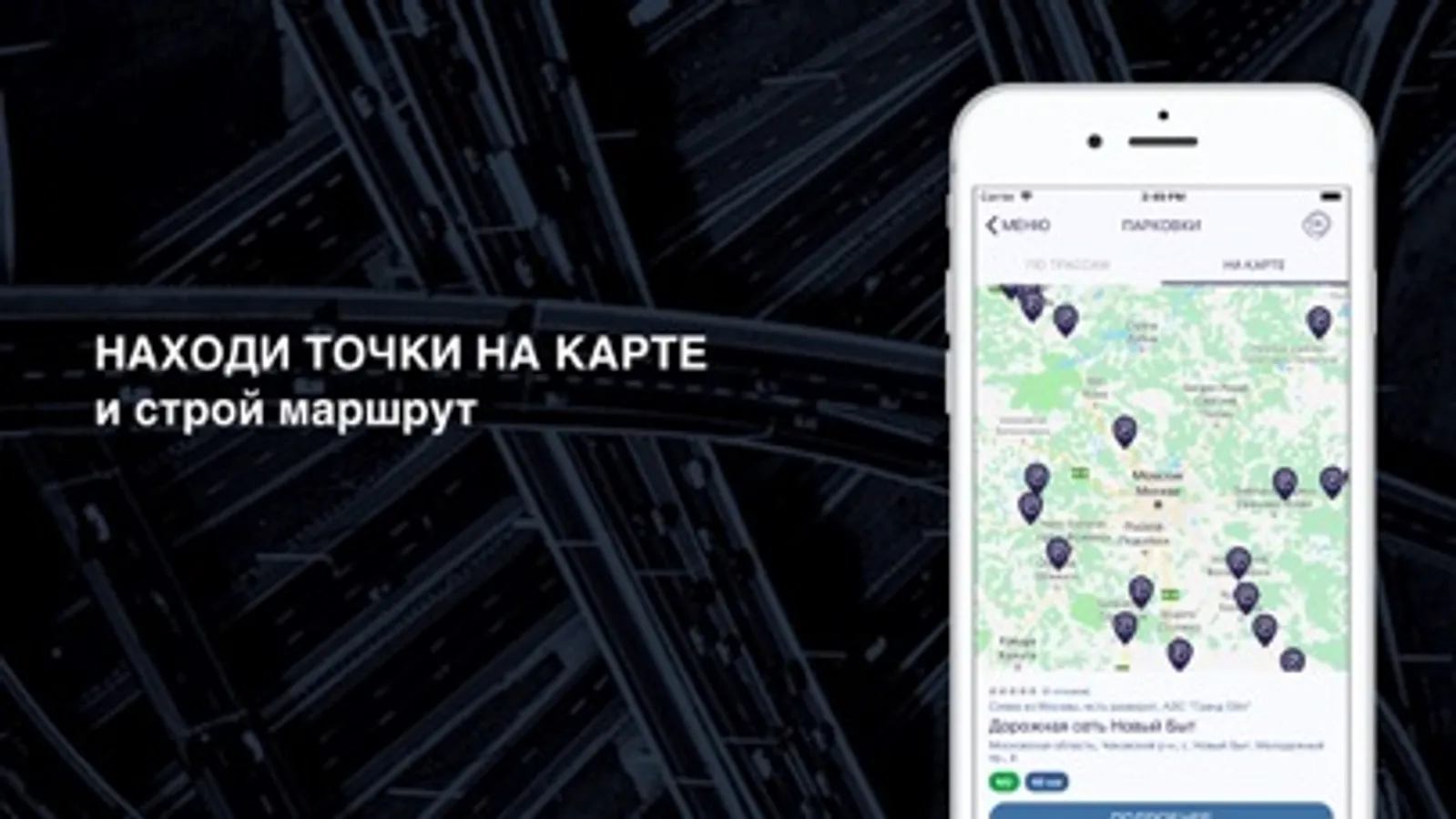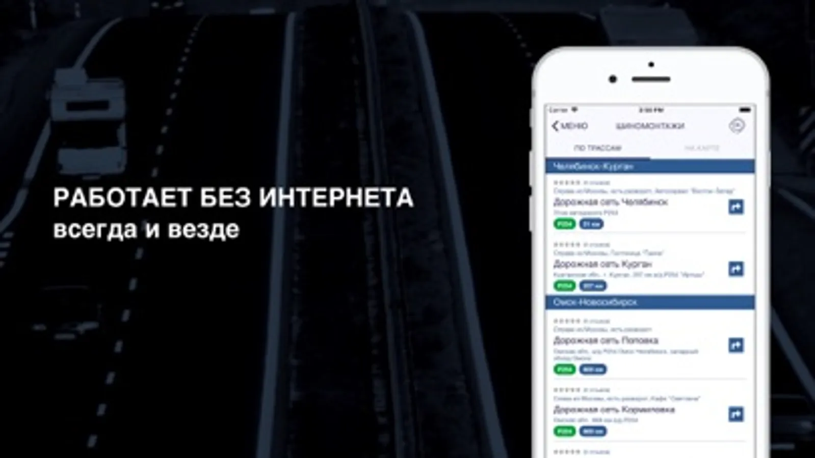 Приложение показывает список парковок, шиномонтажей и моек ДОРОЖНОЙ СЕТИ, сгруппированный по трассам и километрам. Открывайте интерактивную карту прямо в приложении и находите местоположение и точные GPS-координаты конкретной точки сервиса.