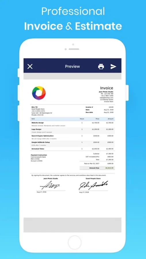 Save yourself time and send an invoice on the go with the easiest professional invoice generator app.