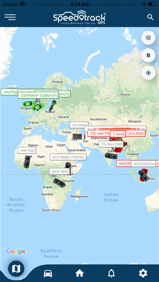 You can track all your vehicles which have a Speedotrack GPS Tracking device installed. You can view the location of your entire fleet on a map. In case of theft, you can use the built-in navigation feature to navigate to your vehicle as it is being driven away and also lock the vehicle from your mobile.