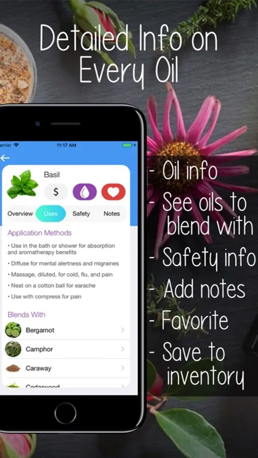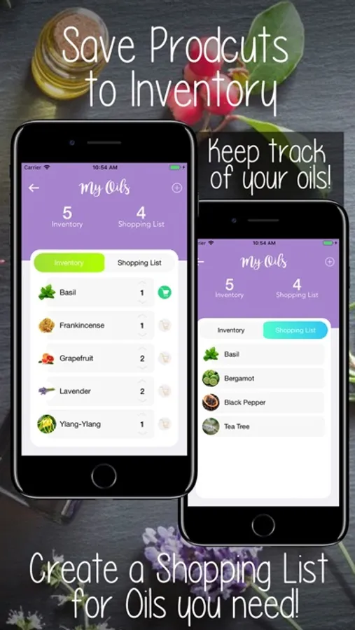 • Our unique Inventory feature allows you to track the oils you have, quantities remaining, and create a shopping list for oils you need to order