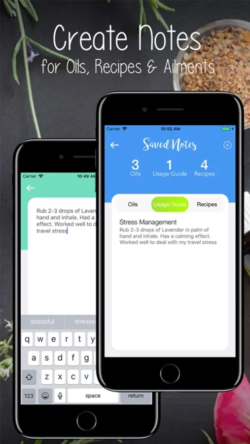 • Create and save notes for any Essential Oil, Ailment or Recipe