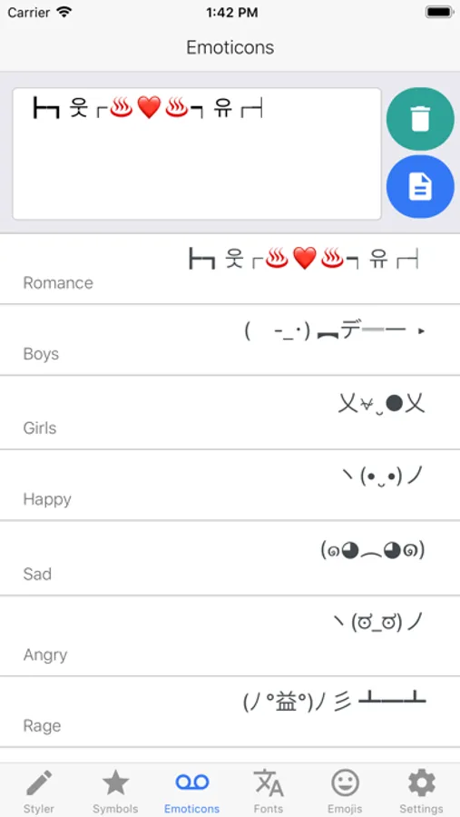 i2Symbol Emoji offers big collection of HD Cute Emoji, Text Symbols, Text Emoticons, Emoji Art Writer, and Cool Text Styler to express your emotions in daily chat.