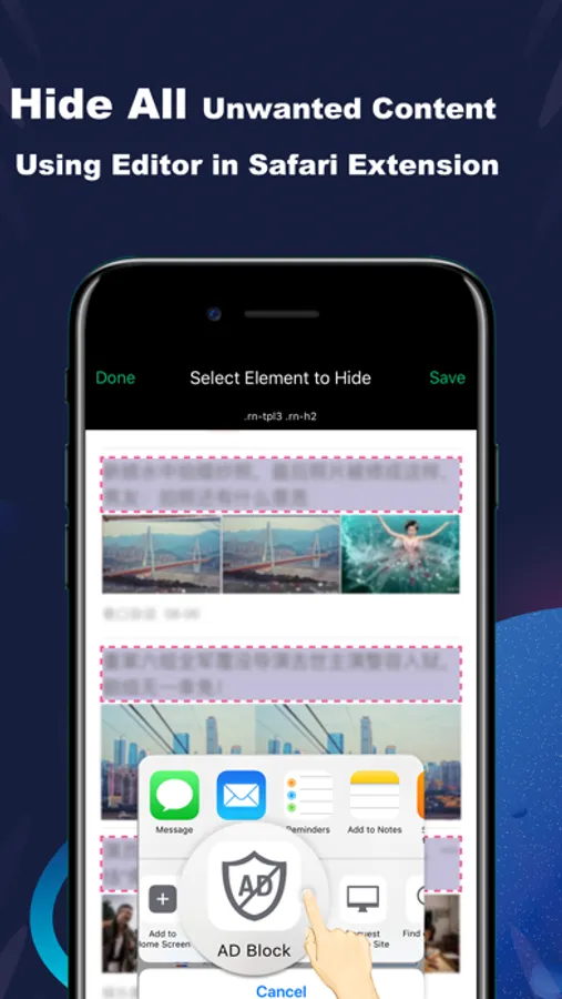 > Hide Elements - Use our visual editor in Safari extension to create rule to hide unwanted content. Quick and Easy!