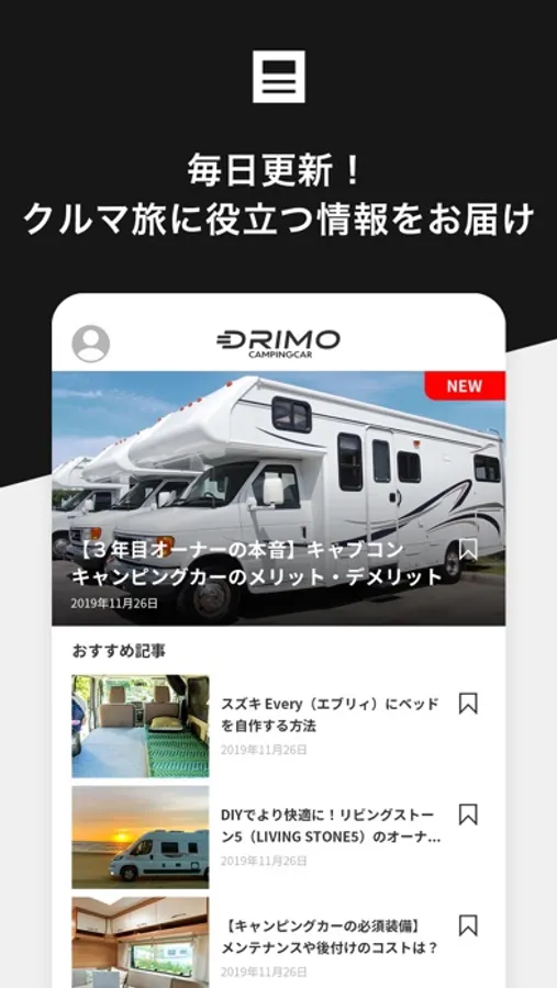 キャンピングカー・車中泊情報Webマガジン「DRIMO(ドリモ)」がアプリになりました!