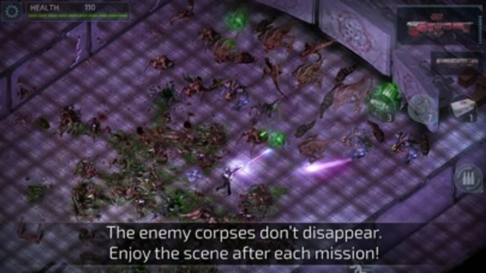 - The enemy corpses do not disappear - see the work done after beating a level!