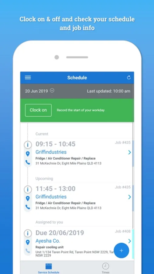 * Access site, customer and schedule notes along with other key details such as activities, job descriptions and cost centre information