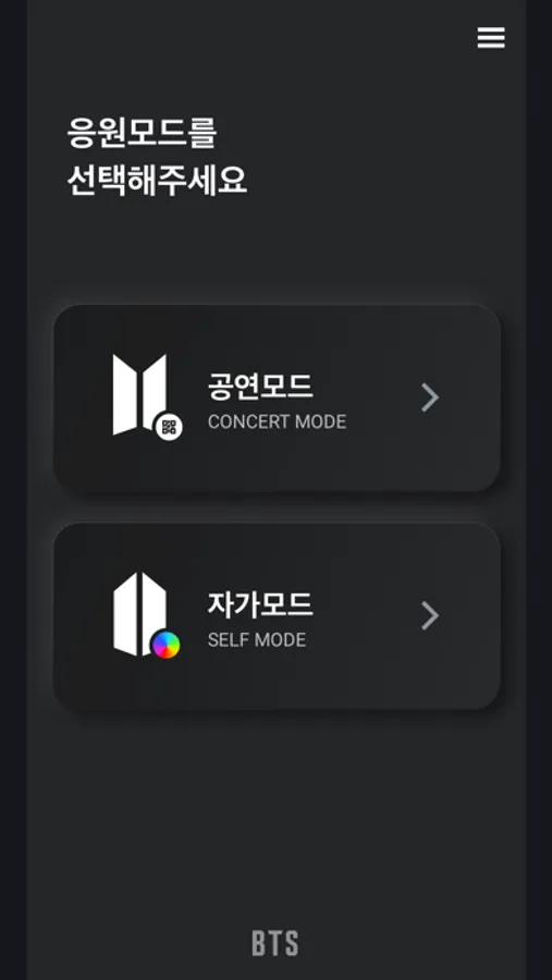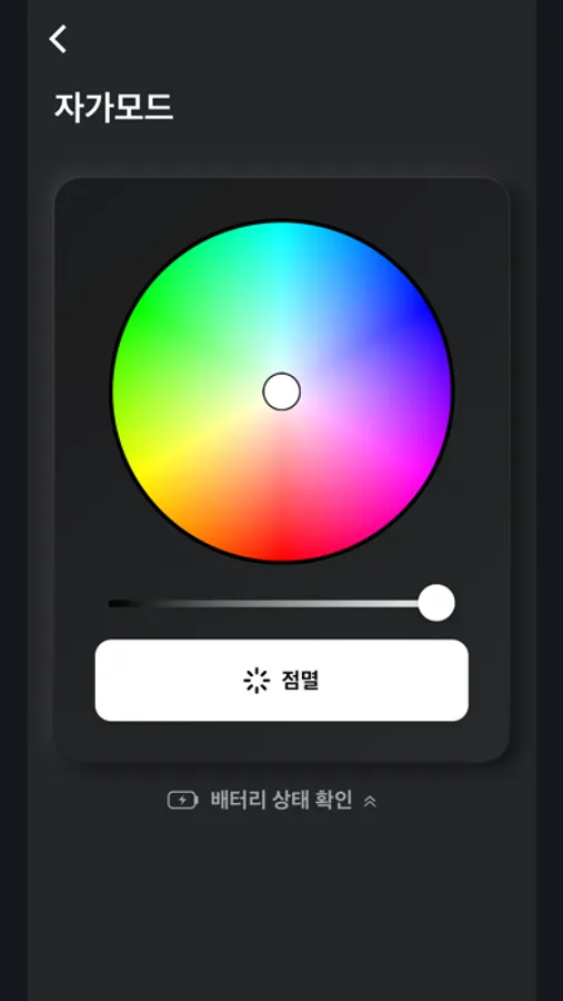 "셀프모드" 상태에서 하단 버튼을 클릭하면 응원봉의 배터리 잔량 확인이 가능합니다. 배터리 교체가 필요한지 확인해 주세요.