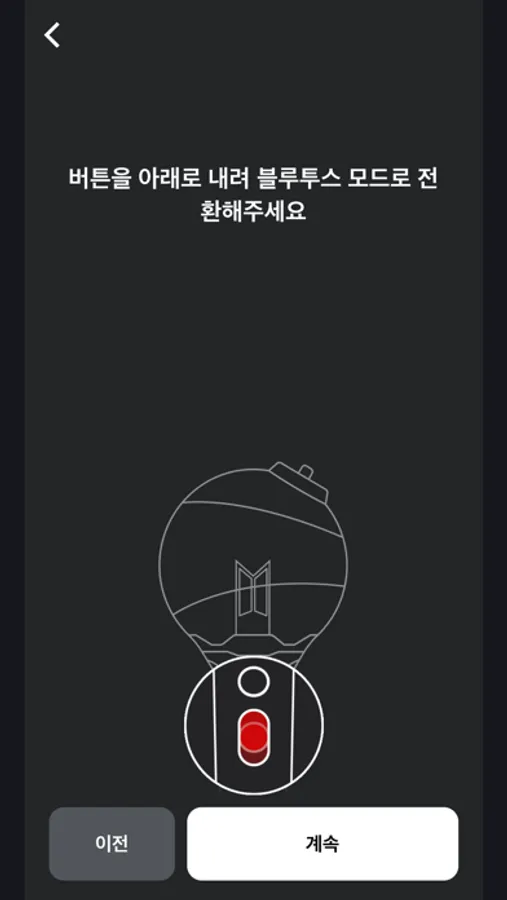 응원봉의 스위치를 아래로 내려 블루투스 모드로 맞춰주세요.