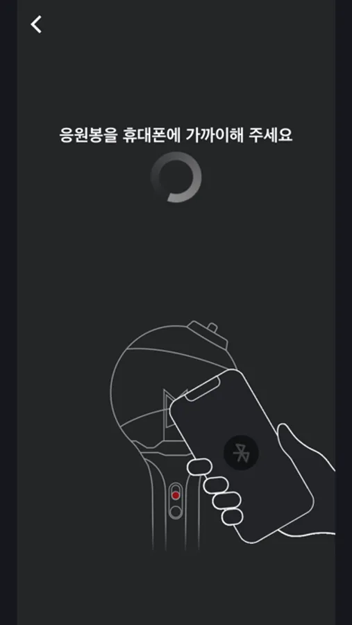 스마트폰의 블루투스 기능을 켜고 응원봉을 스마트폰 화면에 가까이하면, 응원봉과 스마트폰이 연동됩니다.