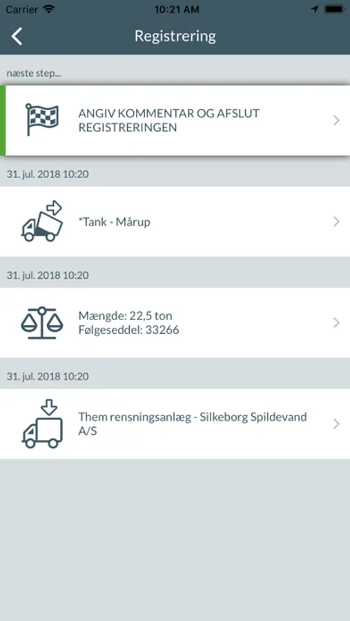Udviklet til chauffører der kører for Miljøservice A/S, med det formål at lette registrering og indberetning af en kørsel.