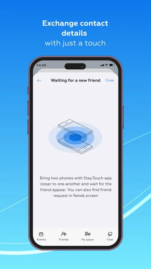 1) Contactless exchange of contacts - Make friends by bringing and tapping two phones close to one another - 100% contactless, and green solution.