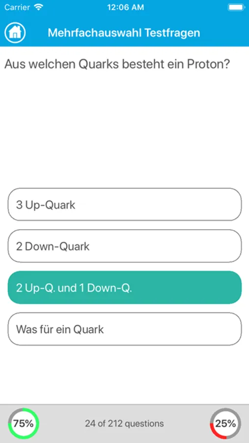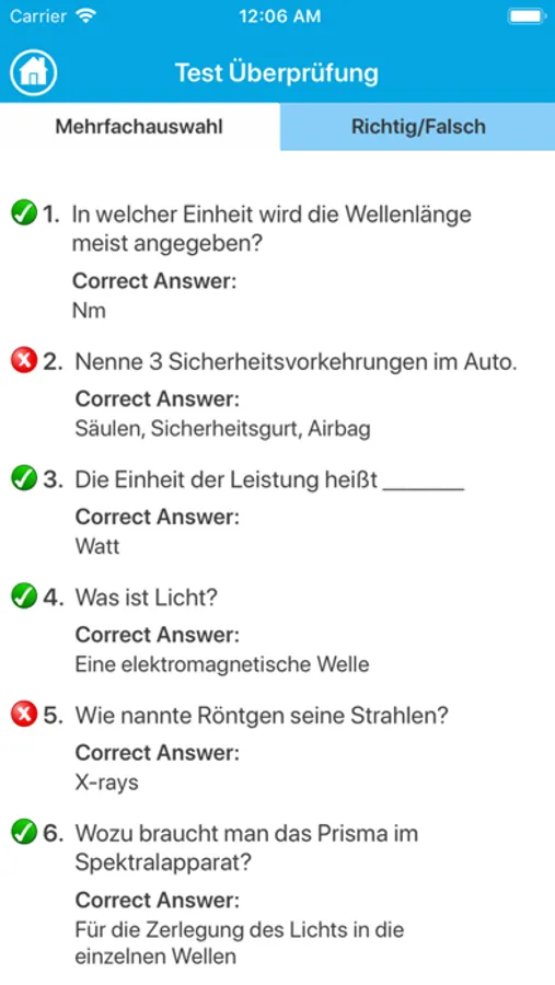 - Es gibt 2 Quiz-Modus. Multiple-Choice Quiz und Richtig/Falsch Quiz.